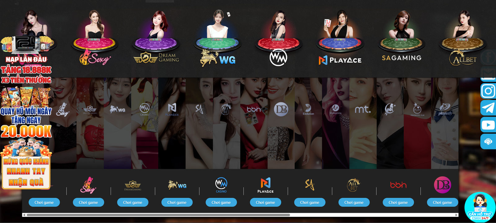 - ✓ Casino trực tiếp (Live Casino): Người chơi có thể trải nghiệm baccarat, roulette, blackjack với dealer người thật.