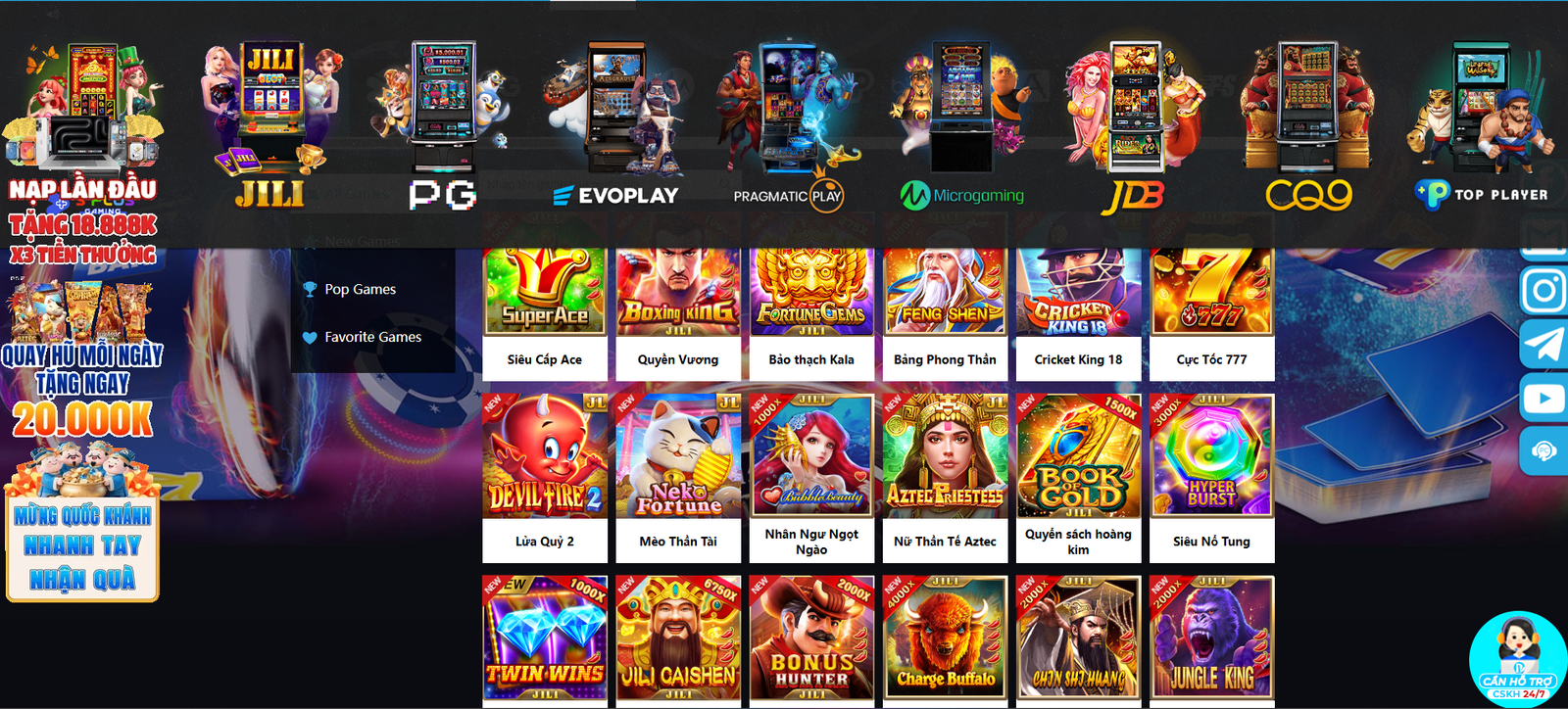 - ✓ Kho game phong phú: Có đủ các thể loại slot từ quay hũ truyền thống cho đến slot 3D hiện đại.